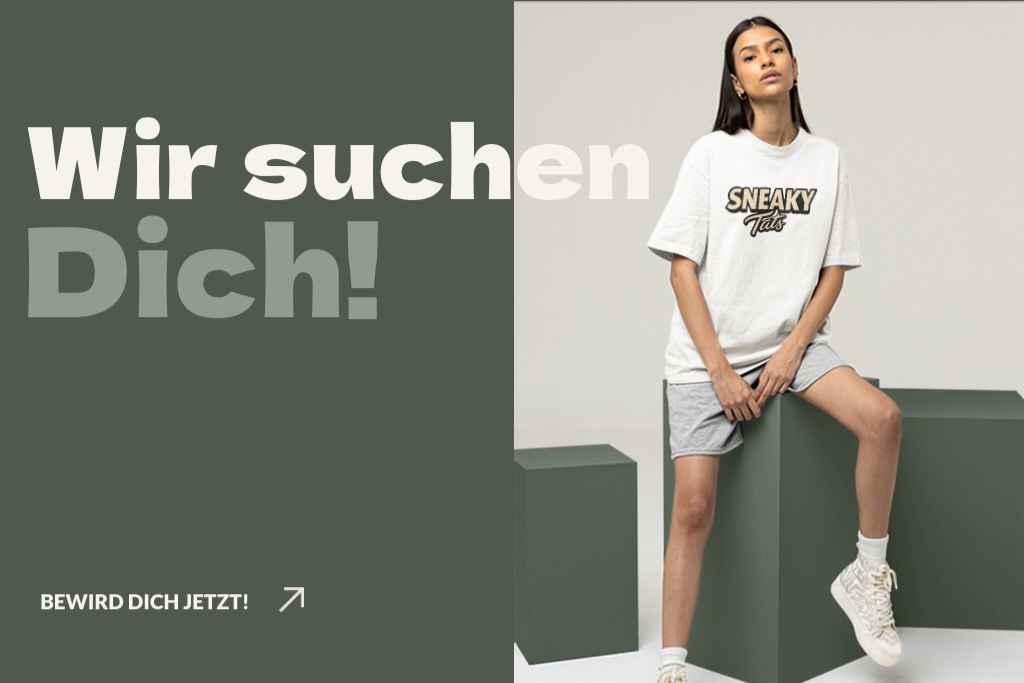 Haltet euch fest, denn wir schalten jetzt in den nächsten Gang. Weil ihr unseren Stuff so feiert, bringen wir Sneakytats aus dem Screen in eure City. Wir machen es offiziell und eröffnen in diesem Jahr unsere ersten drei Stores in München, Berlin und Frankfurt! Endlich ein Ort, an dem ihr Die Sneakytats live erleben könnt.